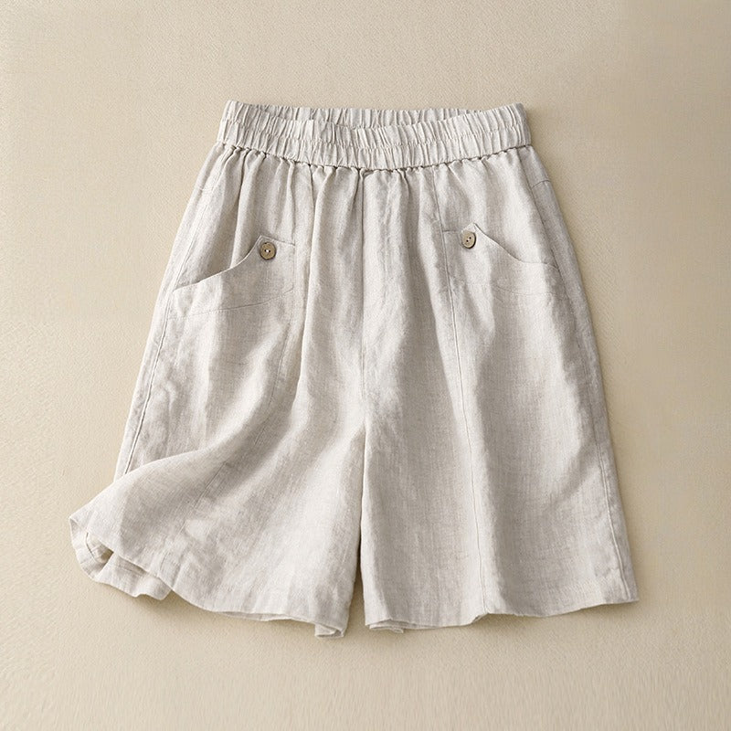 Tailored from gossamer linen, these shorts blend fluid movement with a structured silhouette. A softly gathered waist, button-detailed pockets, and subtle drape create a poetic balance between leisure and polish.