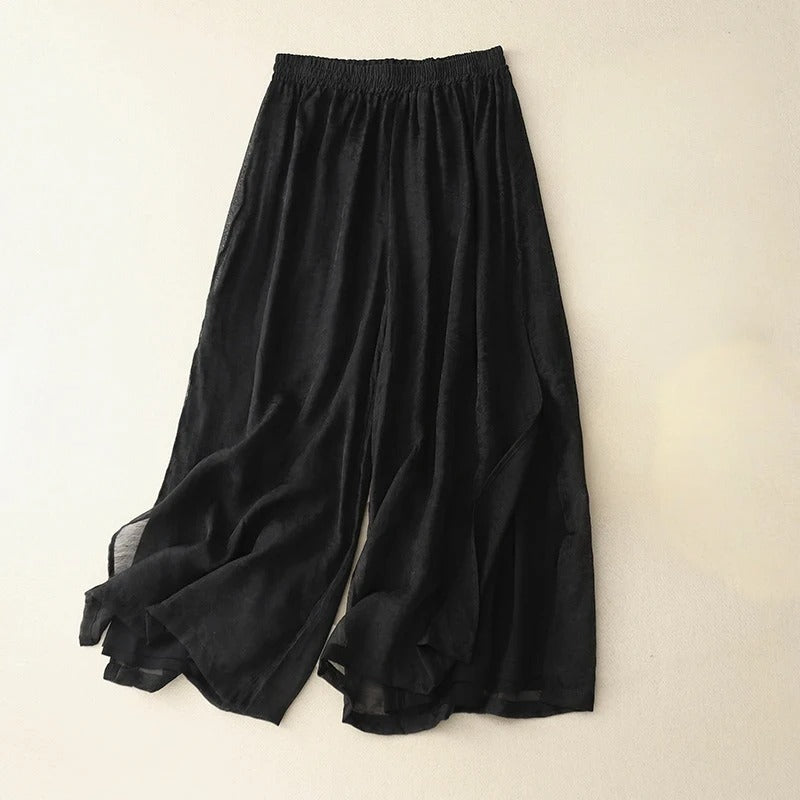 An ode to minimalism with soul. Unstructured and serene, these linen pants fall like water over the frame—fluid, luminous, and touched with a rare, unspoken elegance.