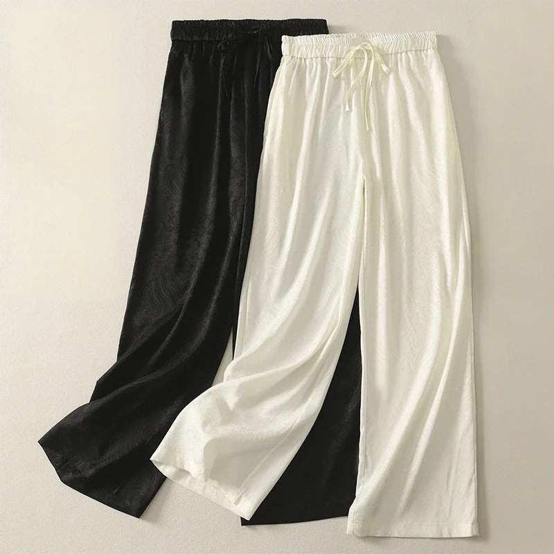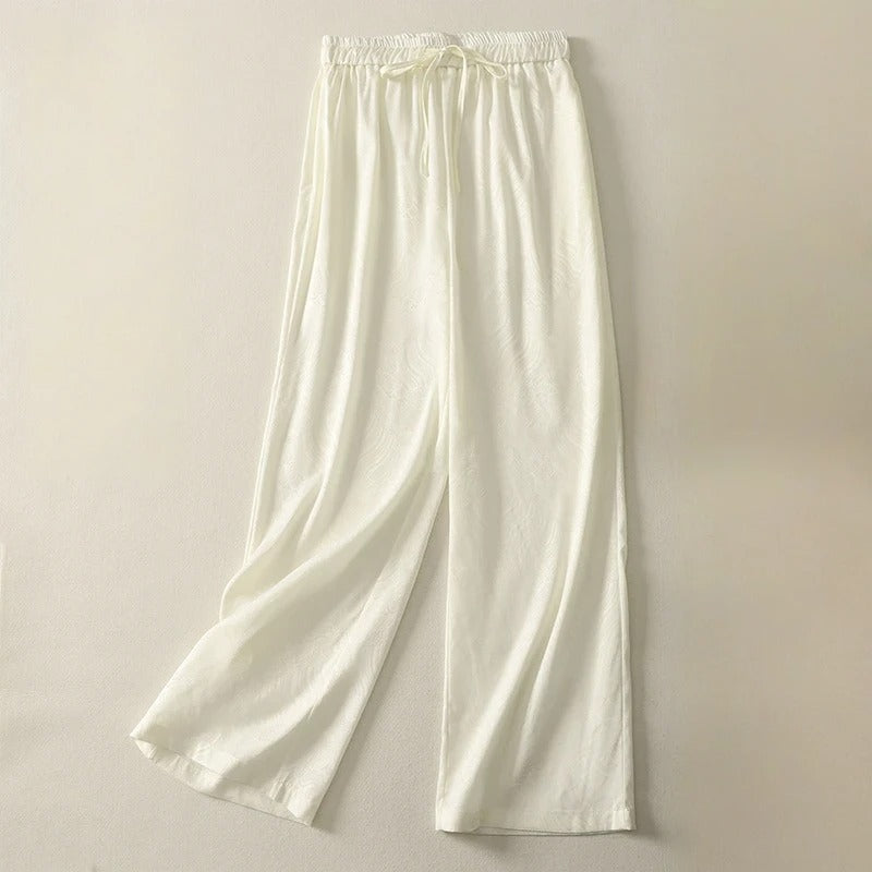 Rendered in tonal gossamer linen, these pants balance languid softness with architectural fall. Minimalist yet expressive, they echo refinement with each pleat and movement. A restrained luxury built for warm-weather living.