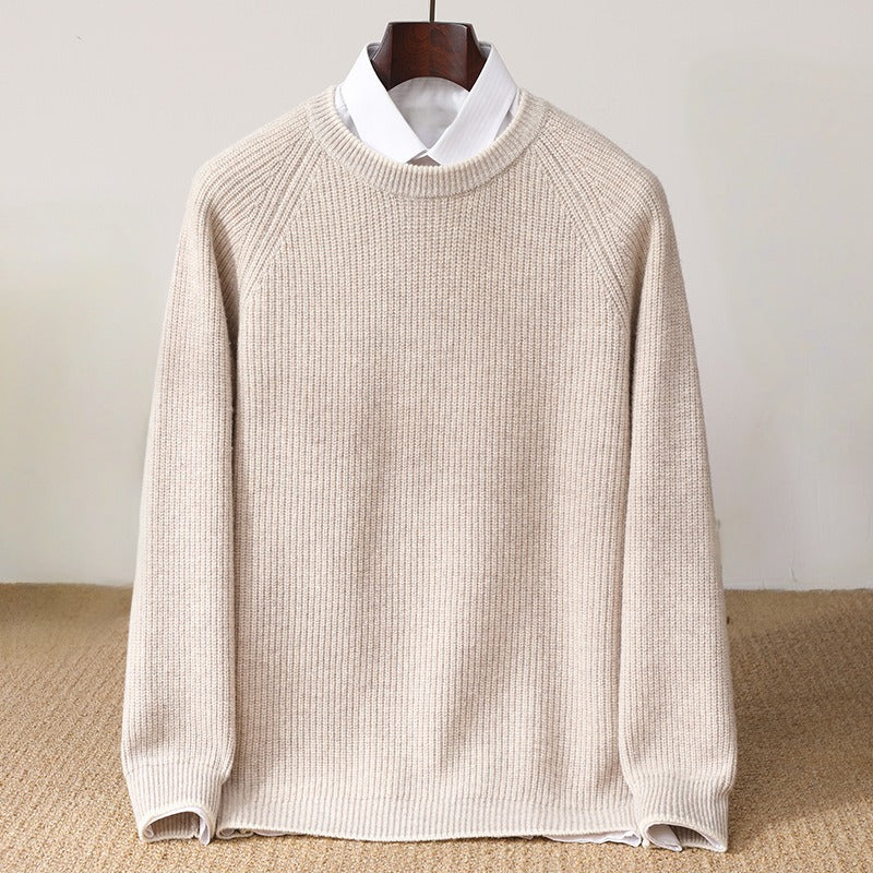 This premium cashmere knit sweater offers a chic and streamlined fit. It’s a foundational piece for professional or weekend wear, providing a polished look with a focus on simple, elegant design.