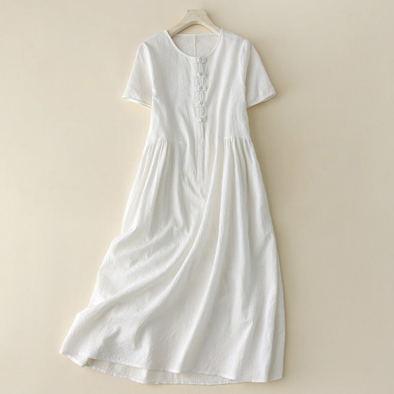 This piece doesn’t just fit the body—it follows its rhythm. A quiet breath of a premium cotton and linen blend, the stitching detail carves a line of subtle drama, turning tradition into a soft statement.