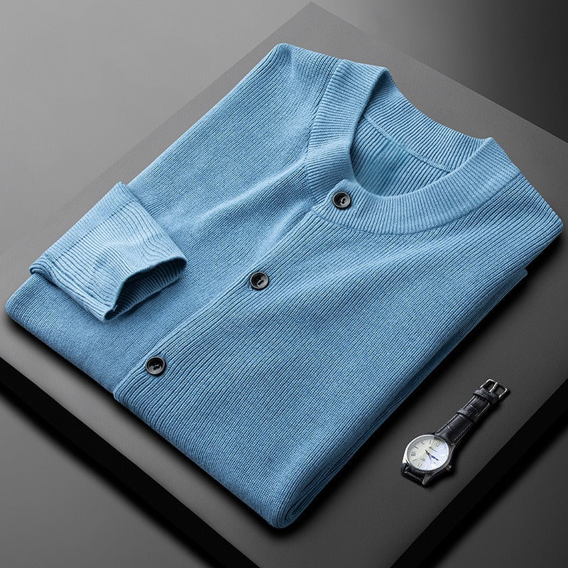 Built for days that call for subtle intention, this cardigan offers a smooth, gentle layer that rests lightly across the frame. The knit texture brings depth without weight, forming a balanced profile that feels calm, grounded, and quietly elevated. A staple shaped for the man who values simplicity with meaning—polished without trying.