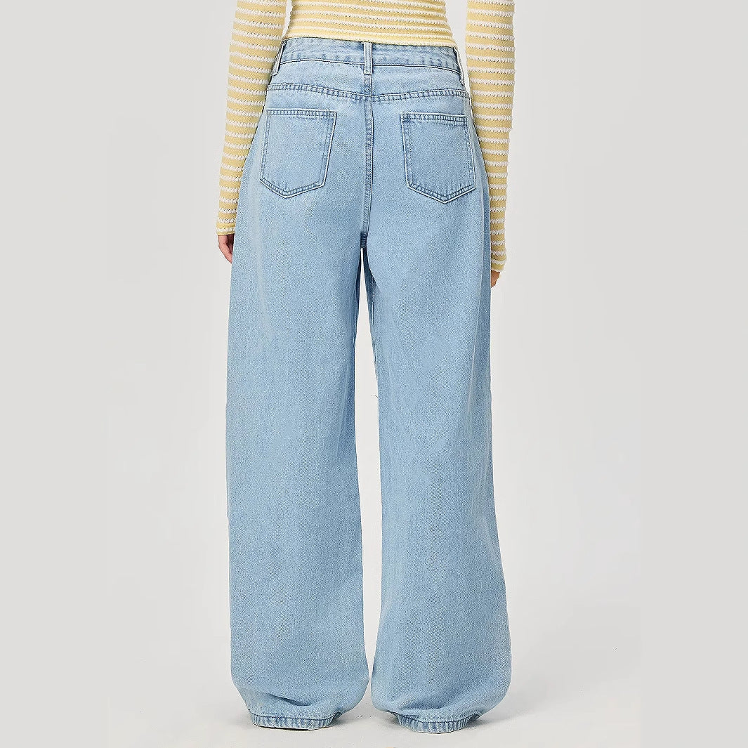 These light-wash denim pants offer a fresh, contemporary take on a beloved classic, featuring delicately rendered floral cut-outs along the wide leg. Their relaxed fit and subtle detailing provide a casually polished statement, ideal for a refined weekend brunch or an effortless warm-weather escape.