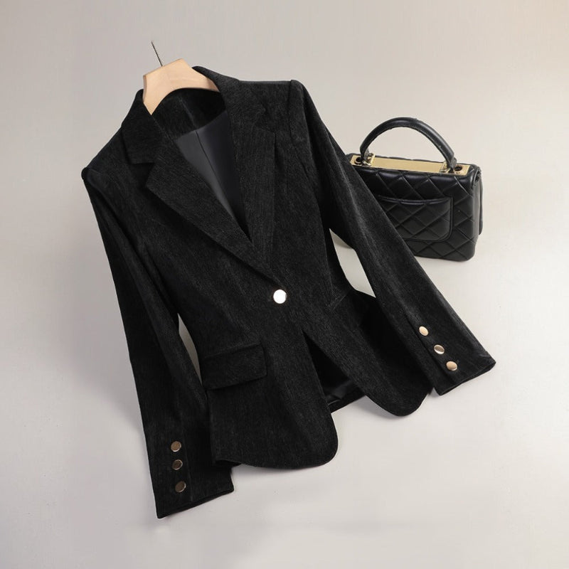 An ode to understated glamour, its single-breasted form is cut for a commanding silhouette, the depth of the velvet offering an almost molten sheen—an impeccable choice for elevating both bespoke separates and evening wear.